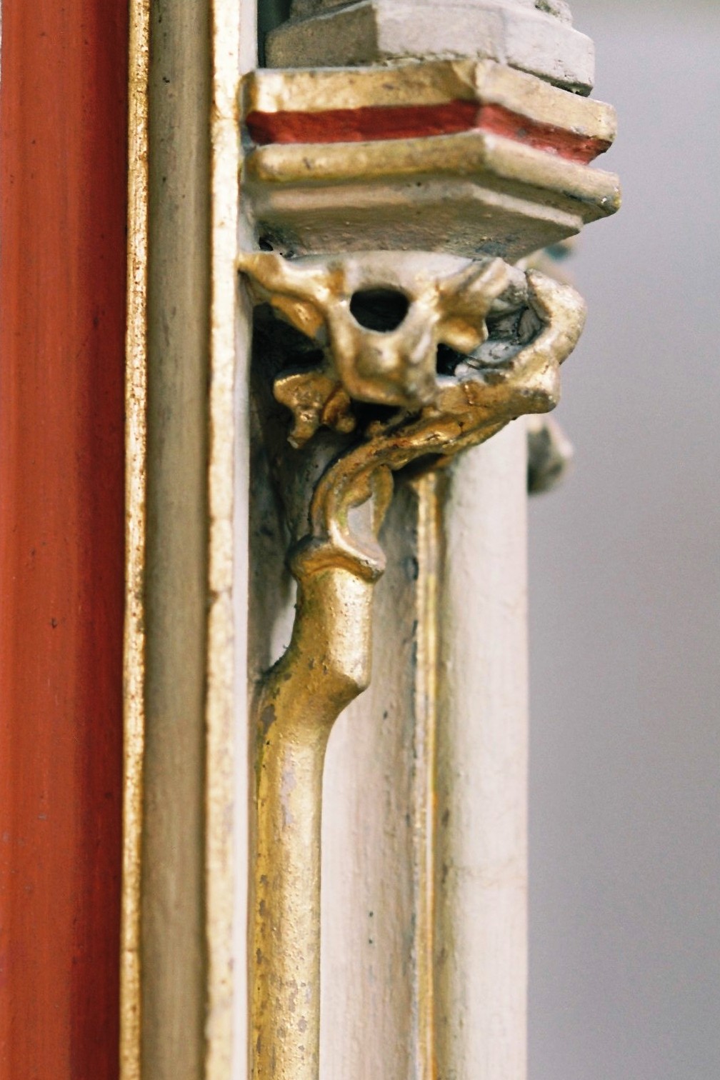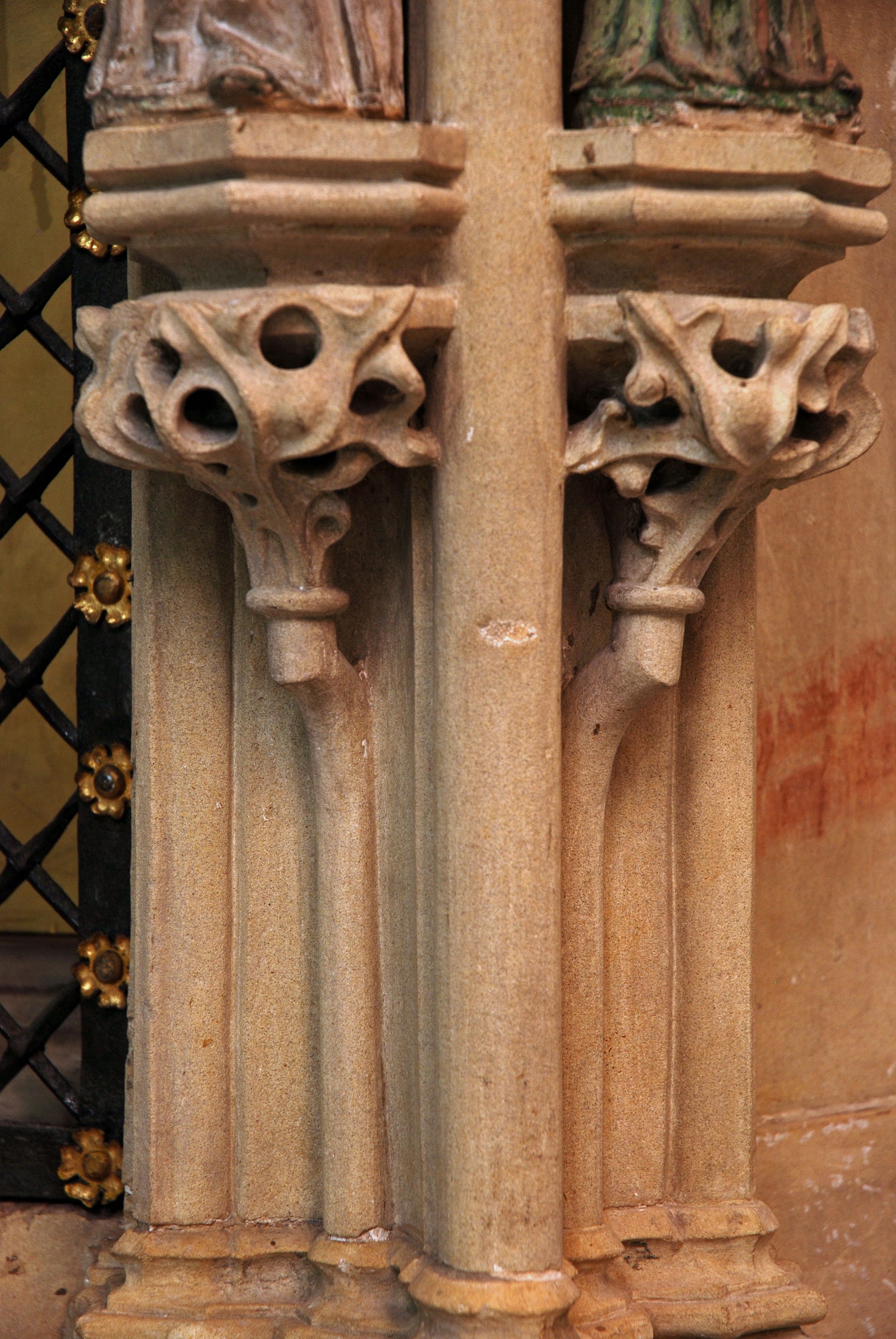 Die Podeste ruhen auf kleinen Säulchen, die unter den Podesten durch einen Knick vorspringen. zum Vergleich in Ahlen