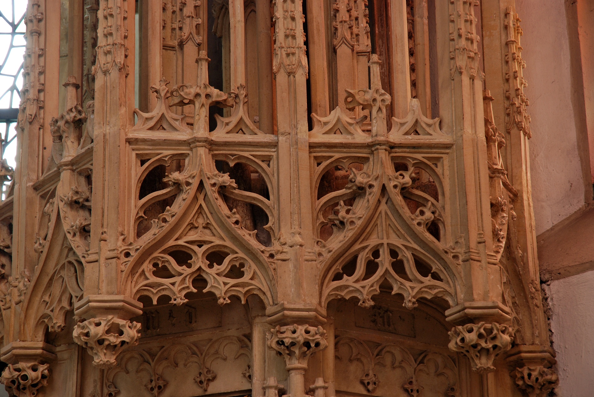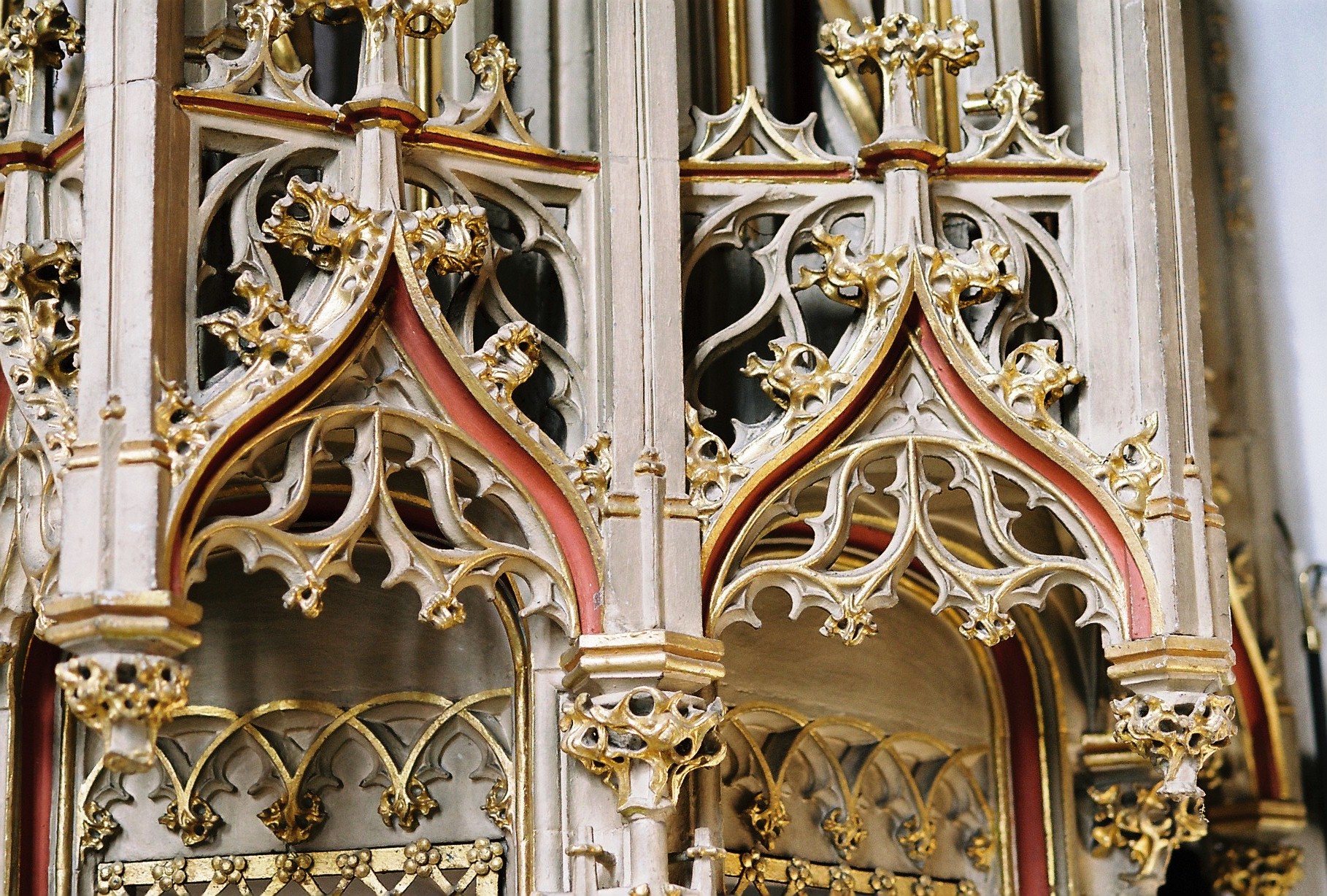 Ein vorkragender Maßwerkkranz bekrönt das Tabernakel.