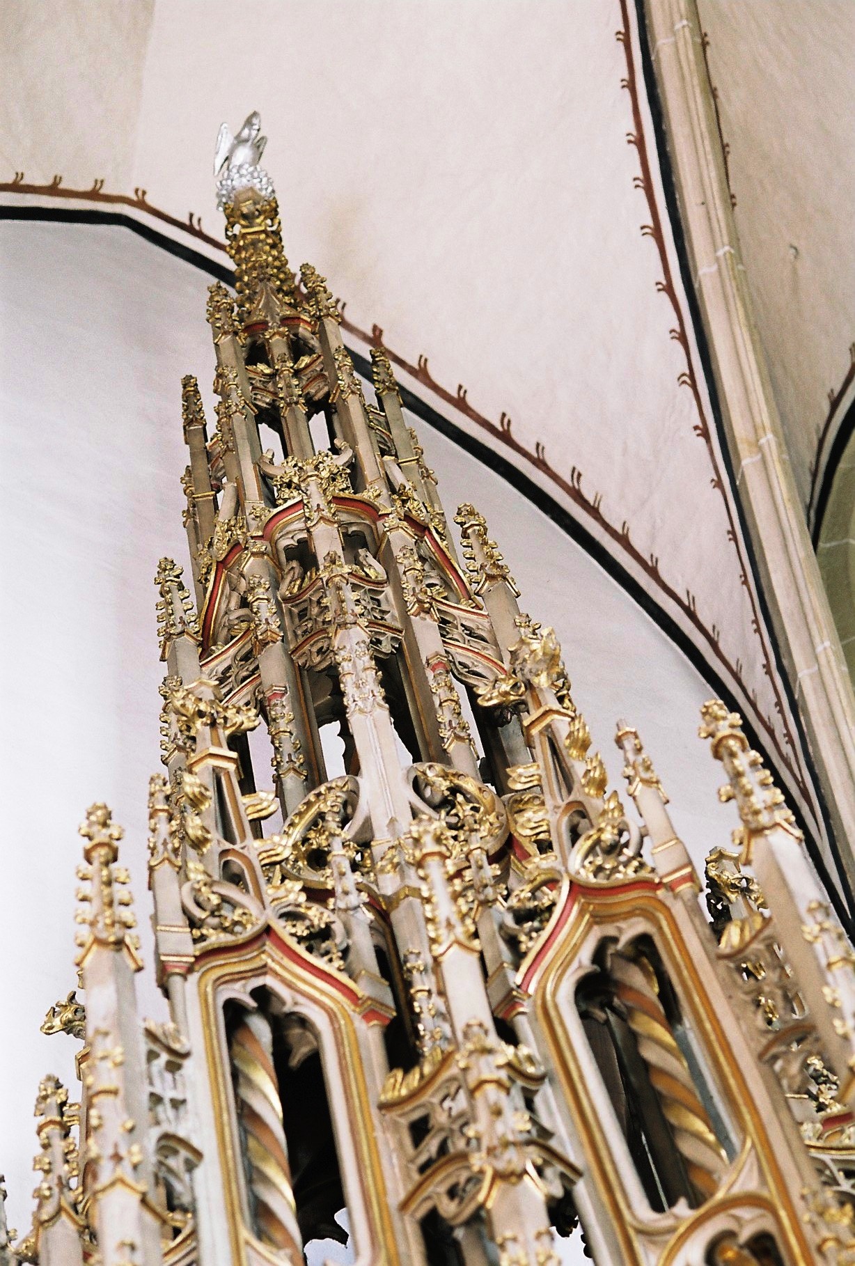 Das Sakramentshaus steigt in mehreren sich verjüngenden Geschossen.