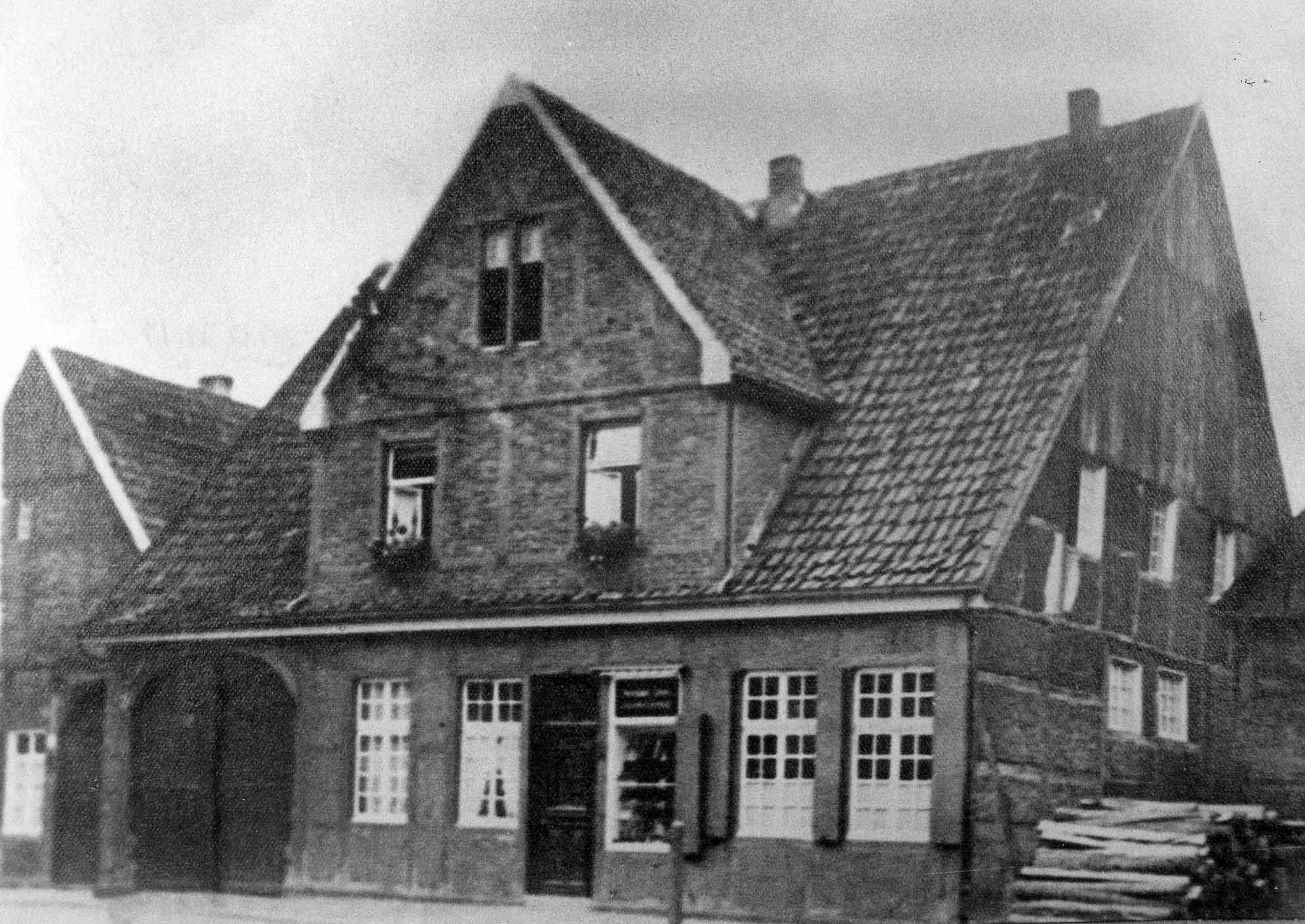 1935? : Fachwerkhaus Nordstraße 35 Häuser von links: Kaltermann (später Austermann) Schuhmacher Drees Ermeling