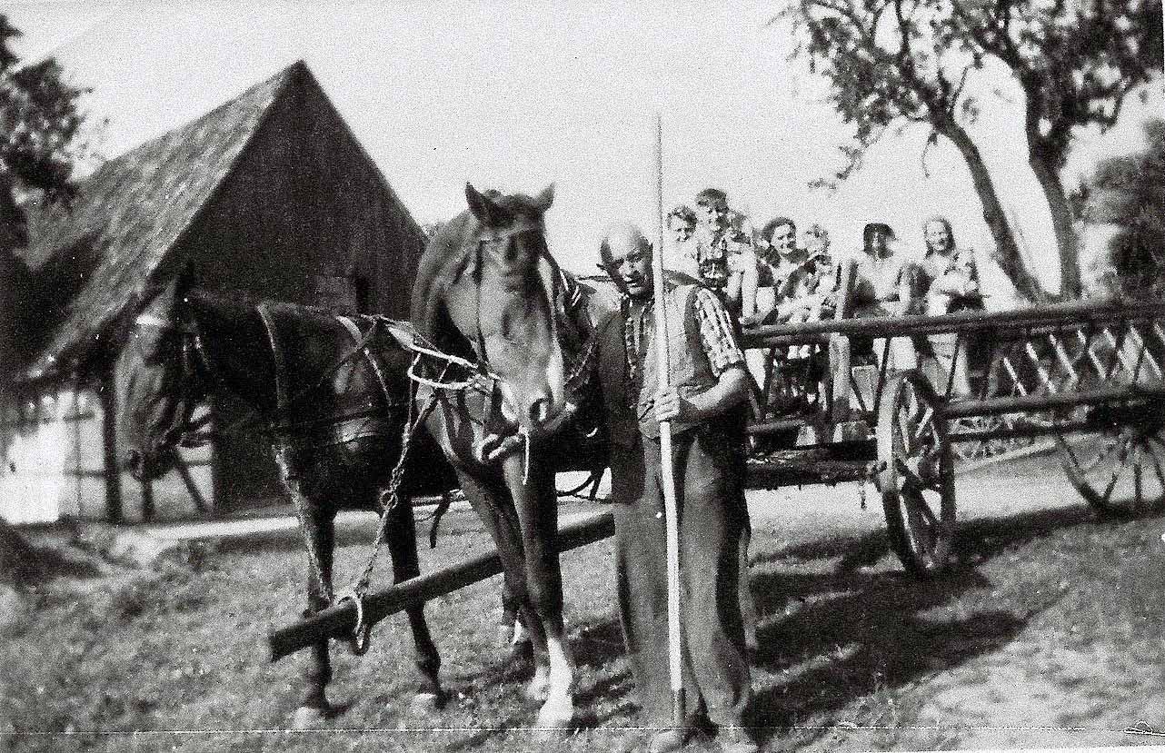 1941 : Ein Pferd vor einem Ringsenwagen in der Bauerschaft Mehringen im August 1941 Personen: Heinrich Heuchtkötter (am Pferd stehend) Familien Vielmeyer und Heuchtkötter