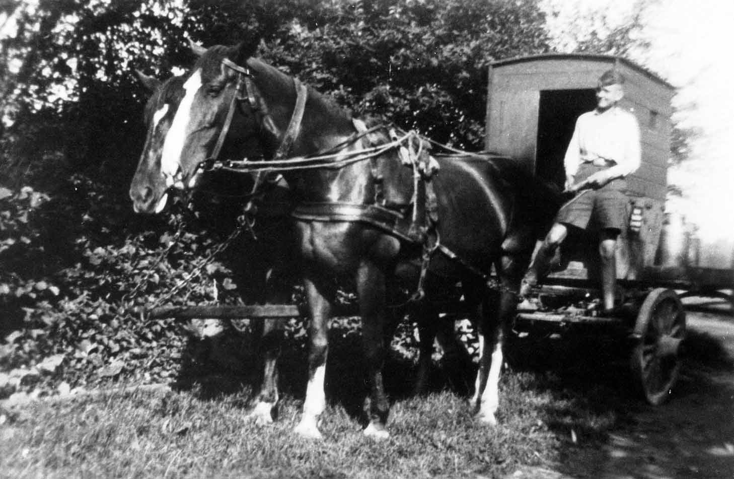August 1941 : Ein Milchwagen mit Wetterschutz auf dem Hof Vielmeyer genannt Heuchtkötter
