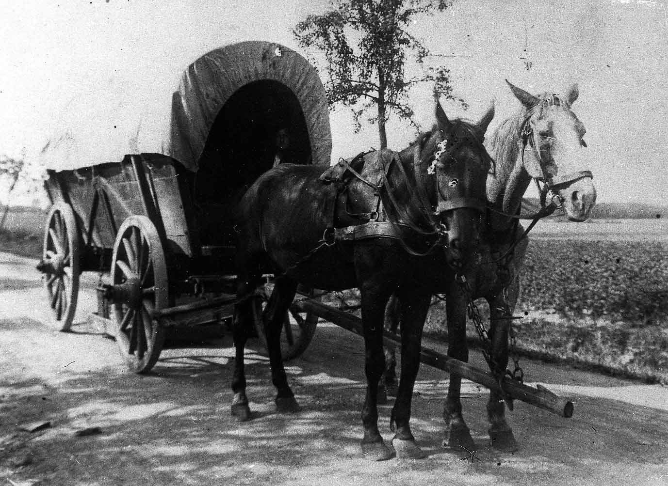 1920? : Pferdefuhrwerk mit Planwagen von Franz Dagehues, Vitusstraße 17 (100)