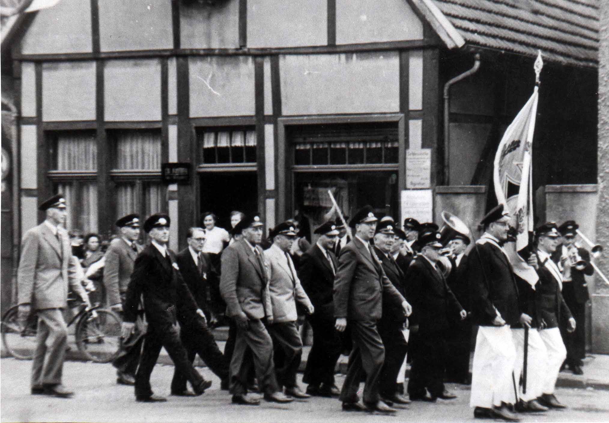 1954 : Parade beim Kriegerfest 1954 auf der Vitusstraße bei Kersting