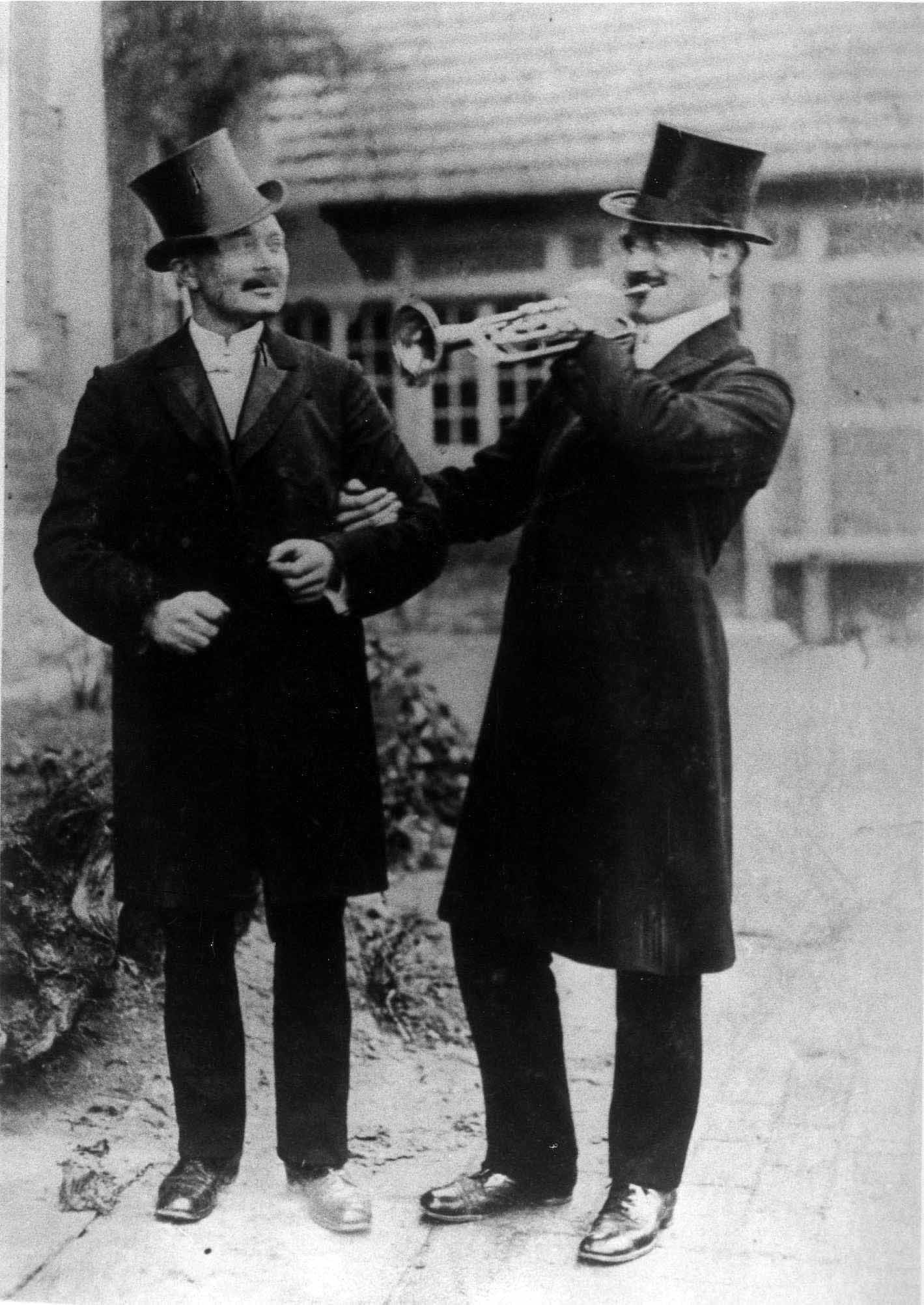 1926 : Anton Averberg und Paul Suttorp mit der Festkleidung Gehrock und Zylinder Schützenkönig: August I. Schulze Zurmussen, Königin: Auguste I. Brockhausen