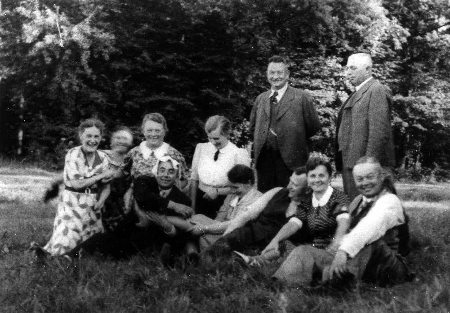 1940 : Der Hofstaat 1940 in geselliger Runde oben: Agnes Rieping, ? Rieping, ? Frohne, Anni Homann, Josef Billmann, Josef Homann unten: Aloys Rieping, Käthe Große Erdmann, Gerhard Frohne, Maria Billmann, Goswin Große Erdmann