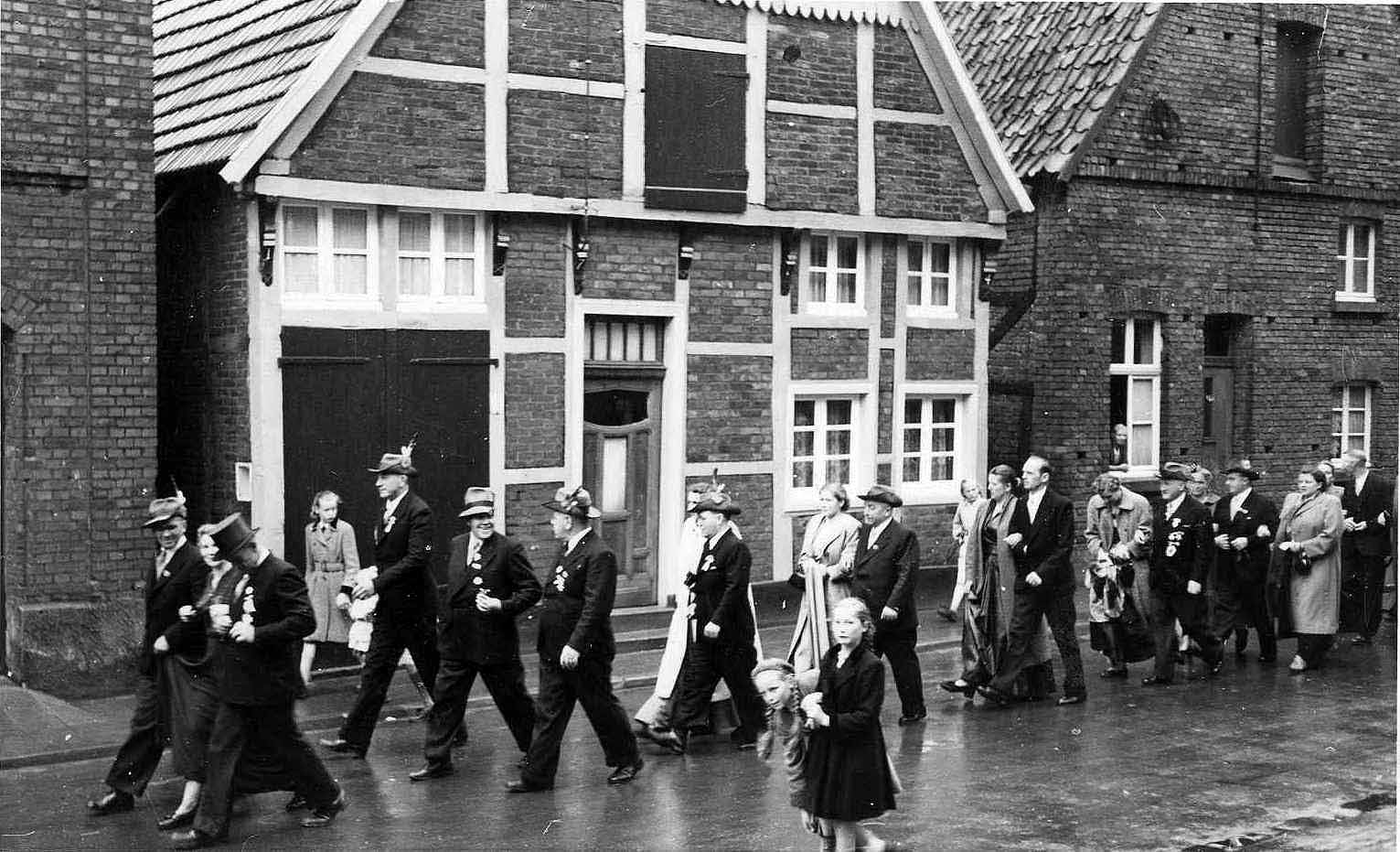 1952 : Festumzug über die Nordstraße Schützenkönig August III Schulze Zurmussen, Königin Margret II.Große Erdmann