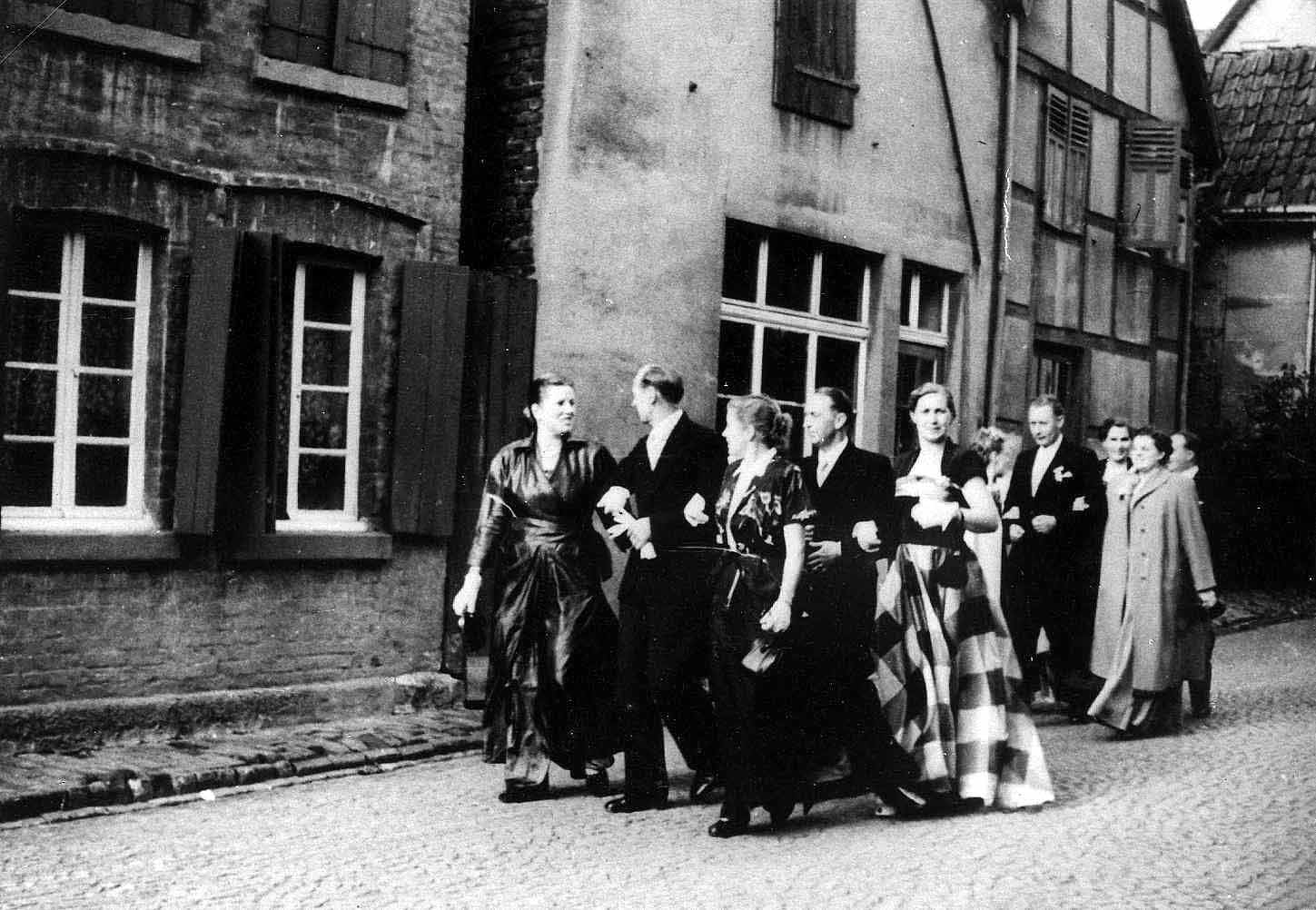 1953 : Königspaar von 1952 mit dem Hofstaat auf dem Weg zur Krönung über die Vitusstraße