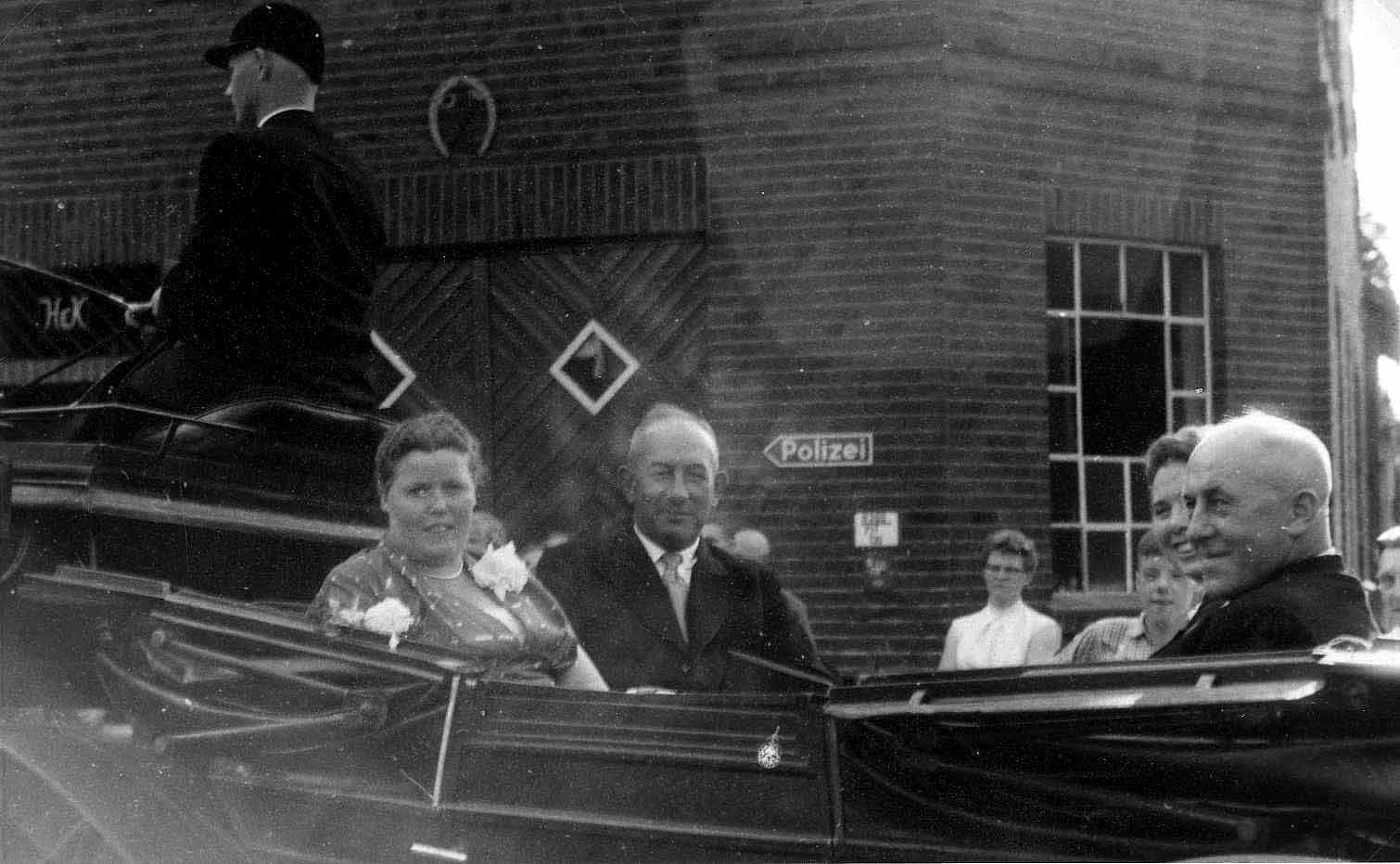 1957 : In der Kutsche: von links: Klärchen Papenbrock, Bernhard Raumberg, Wilhelm Hanhoff, Maria Raumberg