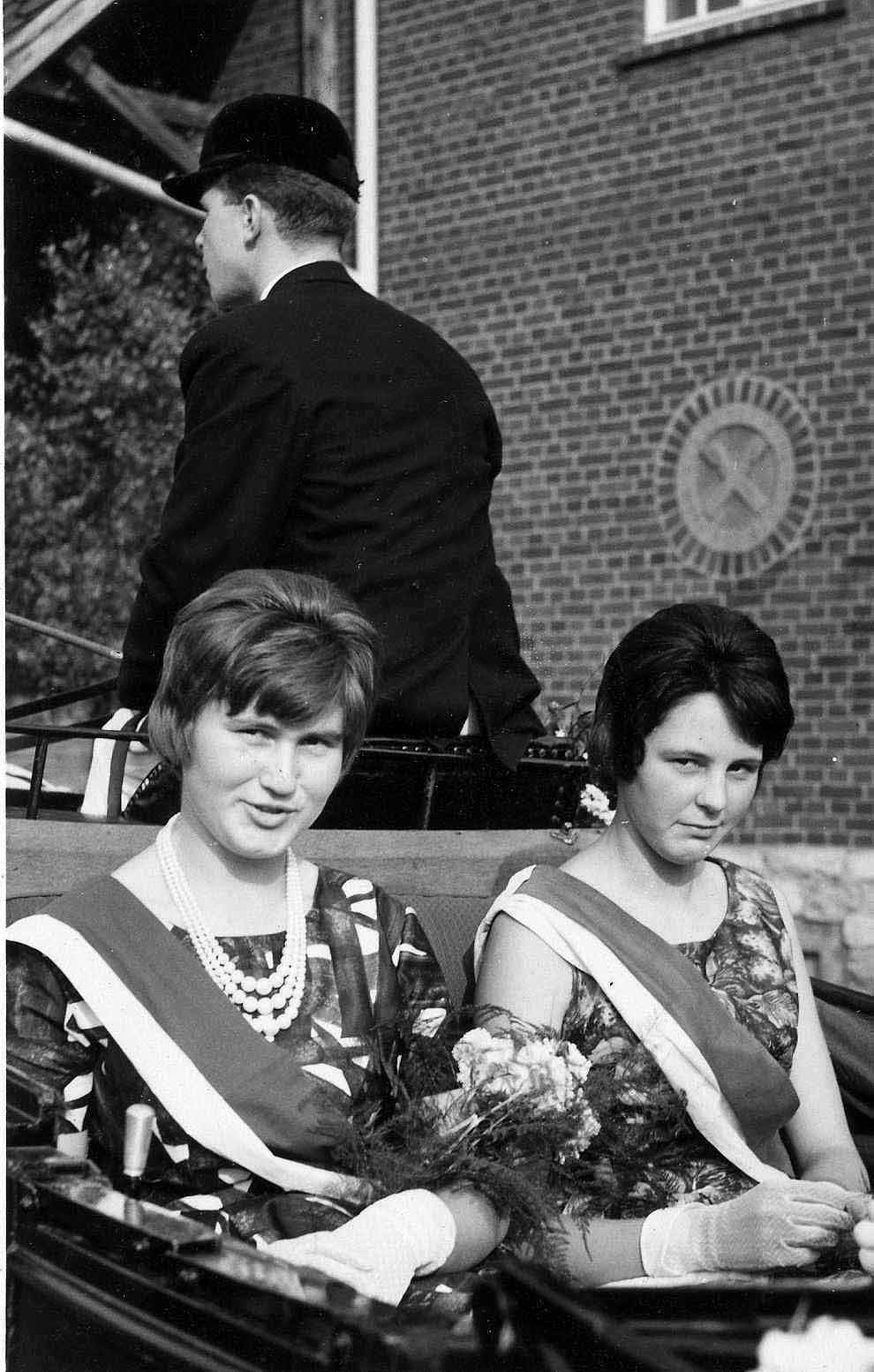 1962 : Auf dem Kutschbock: Josef Schwermann in der Kutsche: Ehrendamen: Anneliese Buntenkötter, Gisela Schwermann