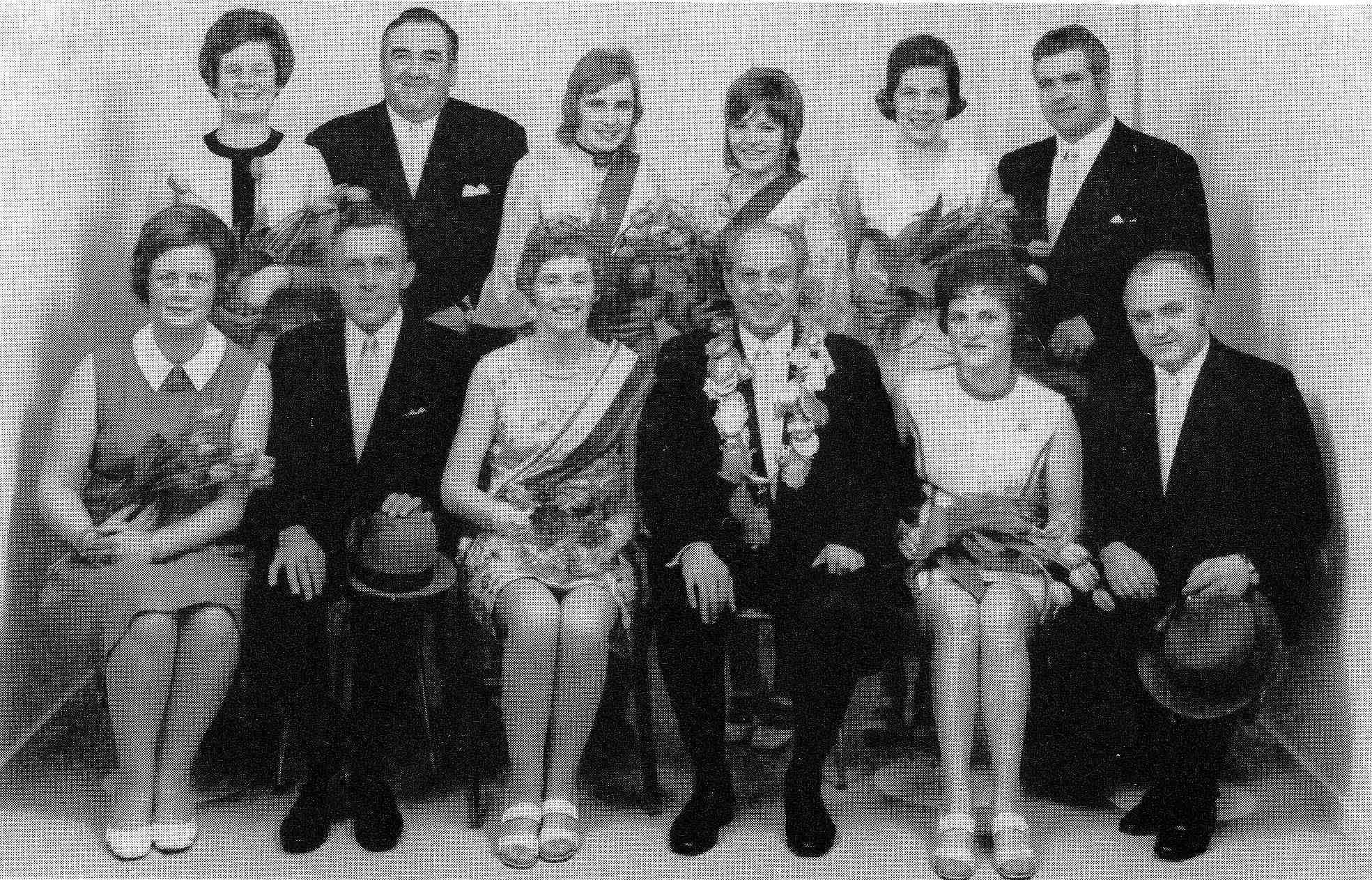 obere Reihe: von links: Marlies Perdun, Paul König, Ehrendame Christa Deckenbrock, Ehrendame Barbara Janowski, Ingrid Lohmann, Ewald Homann
