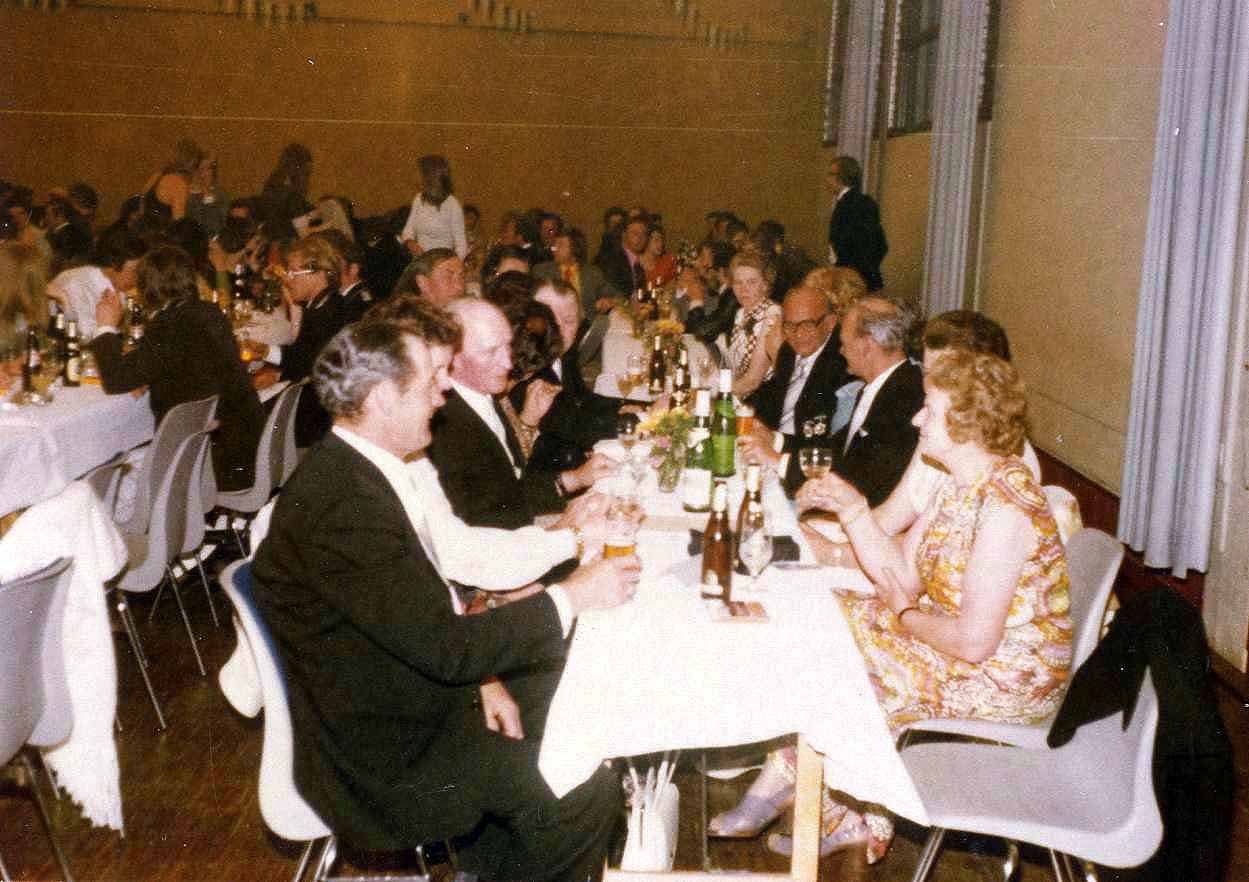 1975 : Beim Königsball in der Festhalle von links: Bernhard Roggenland, Elisabeth Roggenland, Josef Cremann, von rechts: Hedwig Schulze-Tertilt, Hanna Hollmann, August Freitag, Karl Deckenbrock