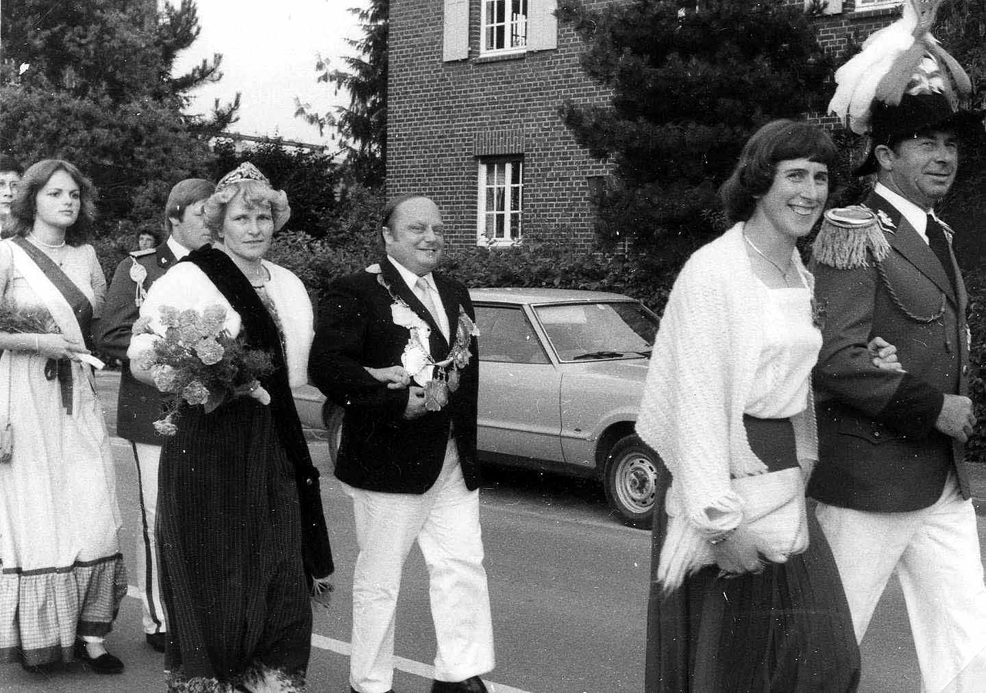 1980 : Polonaise 1980 angeführt von Elisabeth und Heinz Buntenkötter, Königin Toni IV. Möllers und Schützenkönig Karl-Heinz I. Heppelmann, Ehrendame Annette Hagemeier und Willi Vetterle Zeitungsartikel vom 09.07.1980
