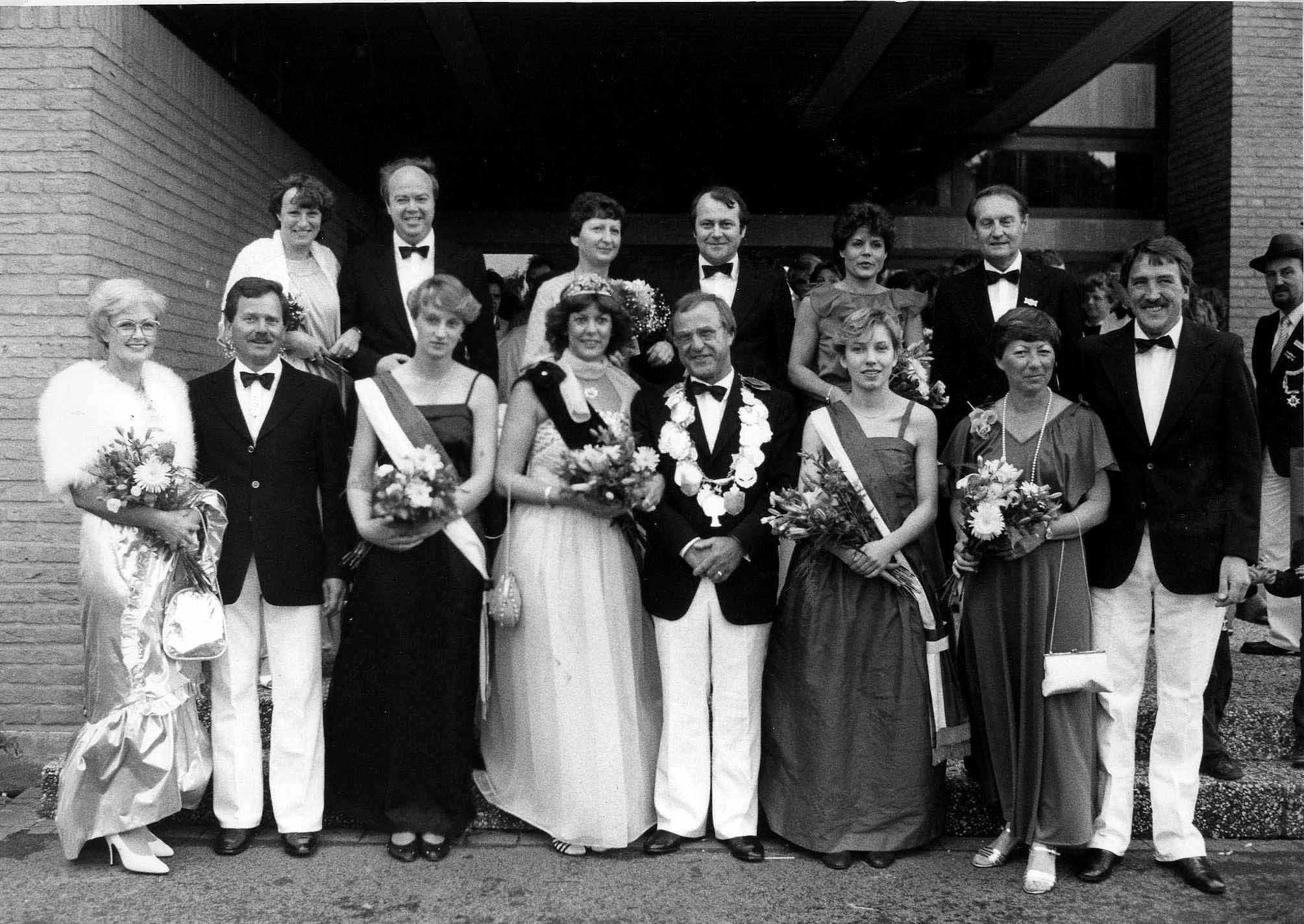 unten links: Heidi Hummeling und Lothar Schieblon, Ehrendame Dagmar Ludtmann, Königin Carola I. Hülso und Schützenkönig Karl VI. Marotz, Ehrendame Christiane Jücker, Doris Marotz und Franz-Josef Hülso