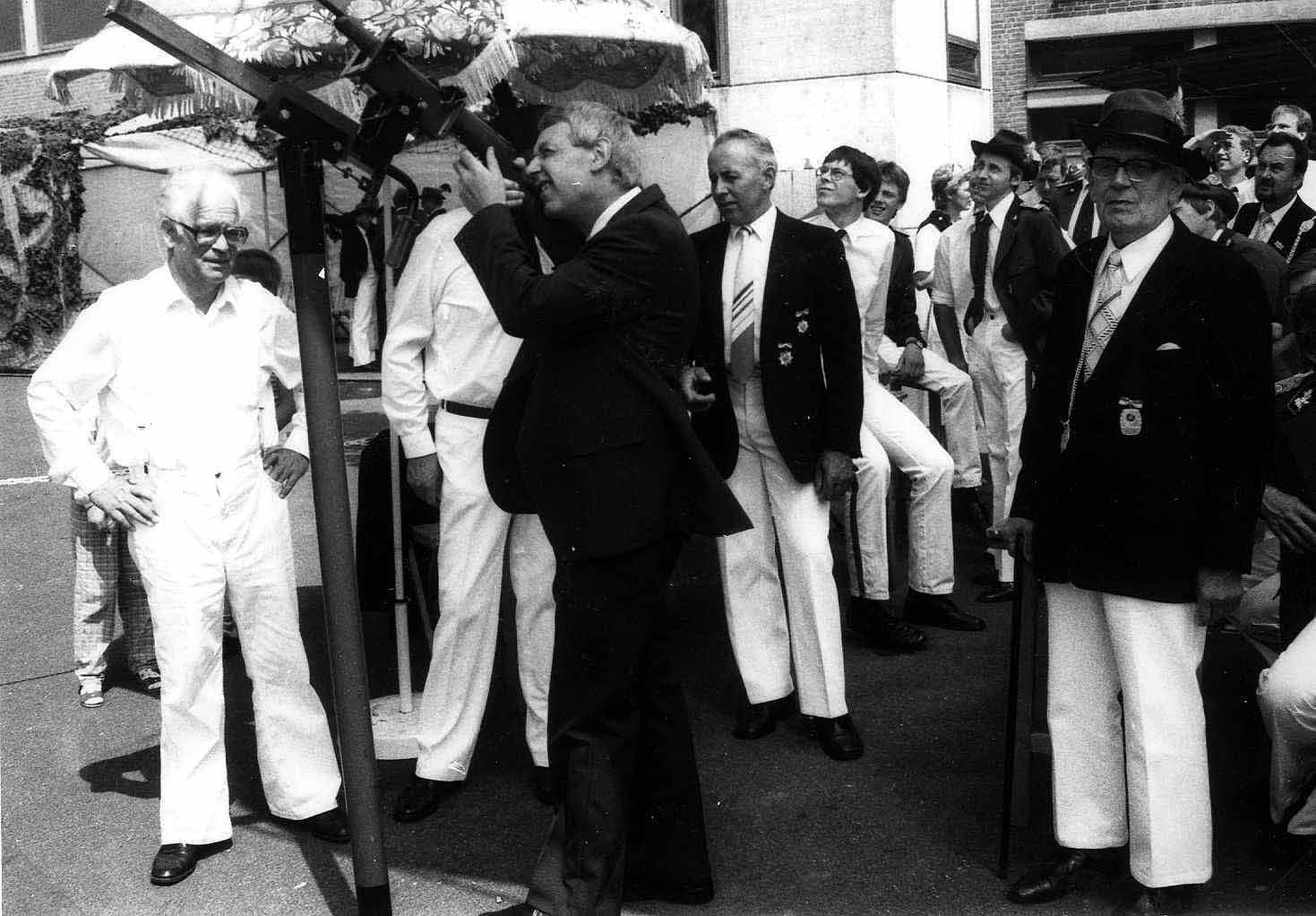 1986 : Schießmeister Burchard Deckenbrock, Pastor Franz Nottelmann, Vorsitzender Josef Gerdemann, Berthold Buntenkötter, Josef Philips, Heinrich Jansen, Franz Loick