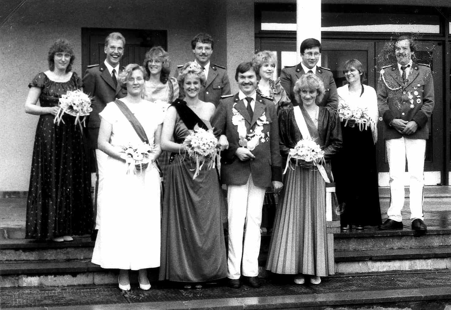 vorn: Stefanie Führ, Königin Astrid I. Friedrich und Schützenkönig Martin I. Bülter, Corinna Rabe