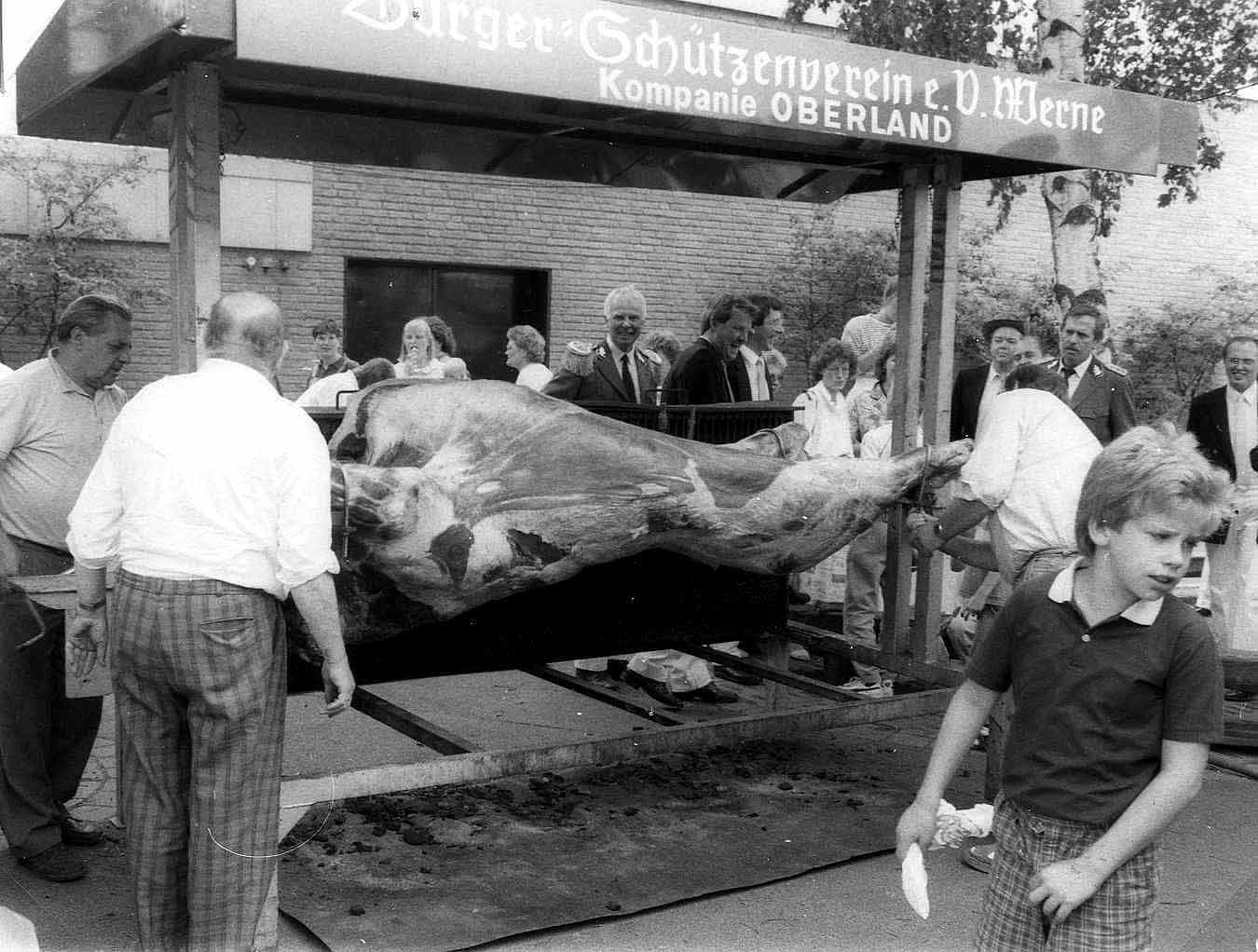 1987 : Ein ganzer Bulle auf dem Grill.