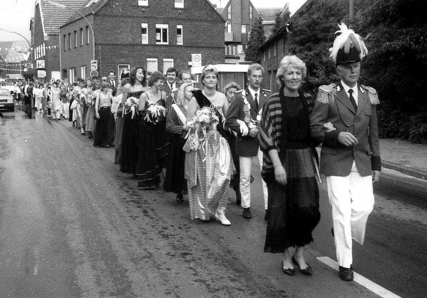 1988 : Polonaise: Bärbel und Josef Schwermann, Königspaar Heike I. und Peter I., Ehrendamen: Vanessa Gray und Sonja Peretzke