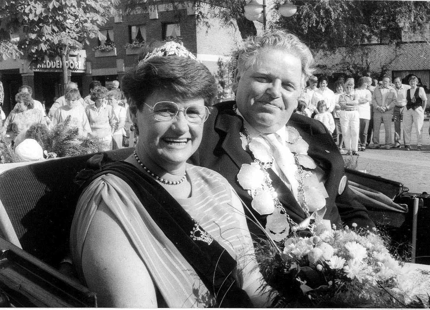 1989 : Königin Maria Koll und Schützenkönig Josef Lindart nach der Krönung in der Kutsche