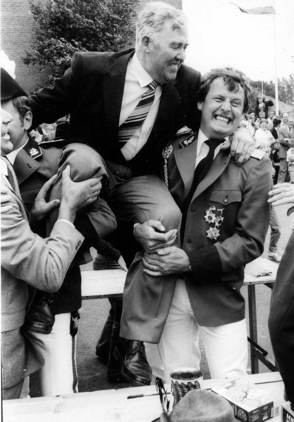 07.1982 : der neue Schützenkönig Heribert I. Richter-Loermann, rechts Heiner Roggenland