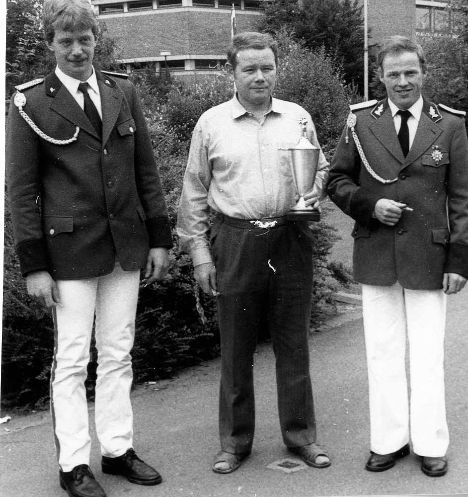 1983? : Pokalverleihung an die Schützenbrüder Johannes Heuchtkötter, Hubert Feidieker und Bernhard Rotthege