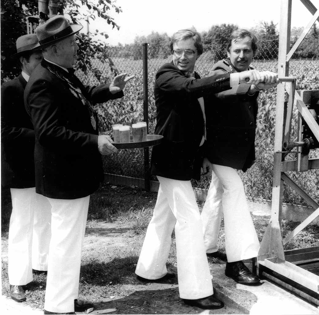 29.06.1983 : Vorbereitung auf das Vogelschießen mit Schützenkönig Heribert Richter-Loermann, Werner Vornholt und Heinz Horstmann