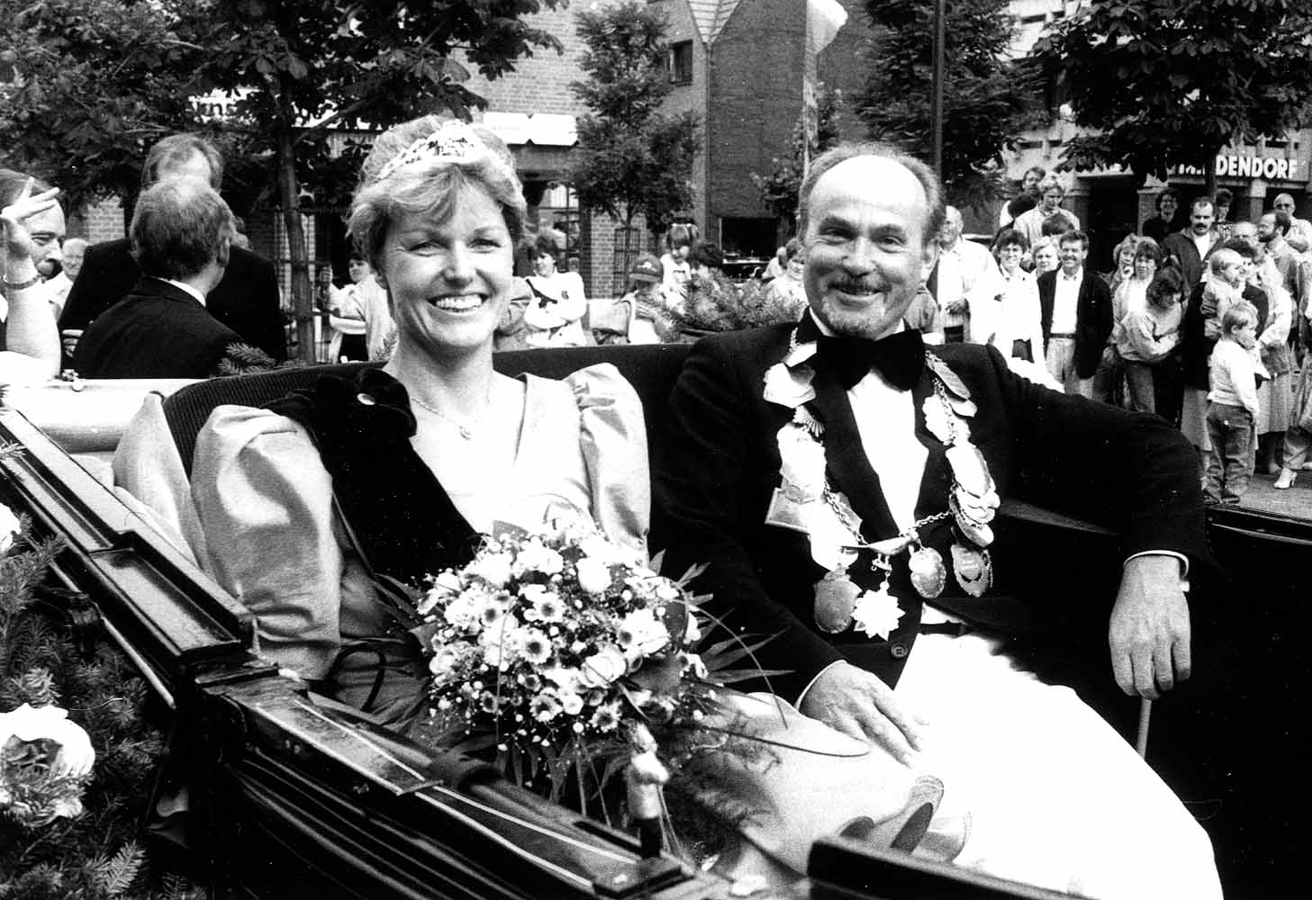 02.07.1990 : Kaiserin Maria I. Lietmann und Kaiser Ludger I. Stuppe in der Kutsche. Zeitungsartikel der GLOCKE vom 04.07.1990