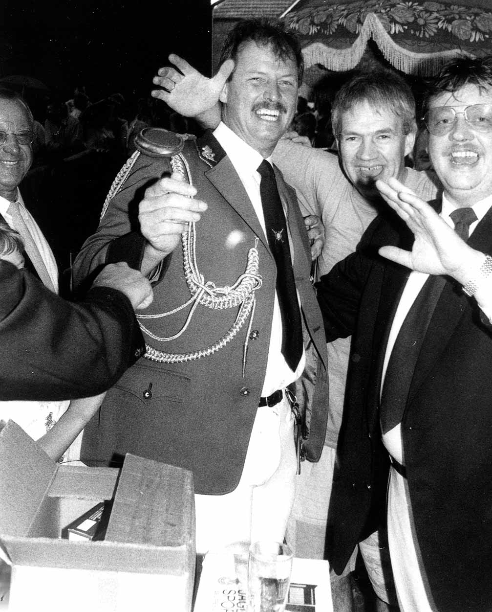 05.07.1992 : Neuer Schützenkönig Heiner Roggenland mit Theo Schulze Brüning und Bernhard Schürkötter Zeitungsartikel der GLOCKE vom 06.07.1992