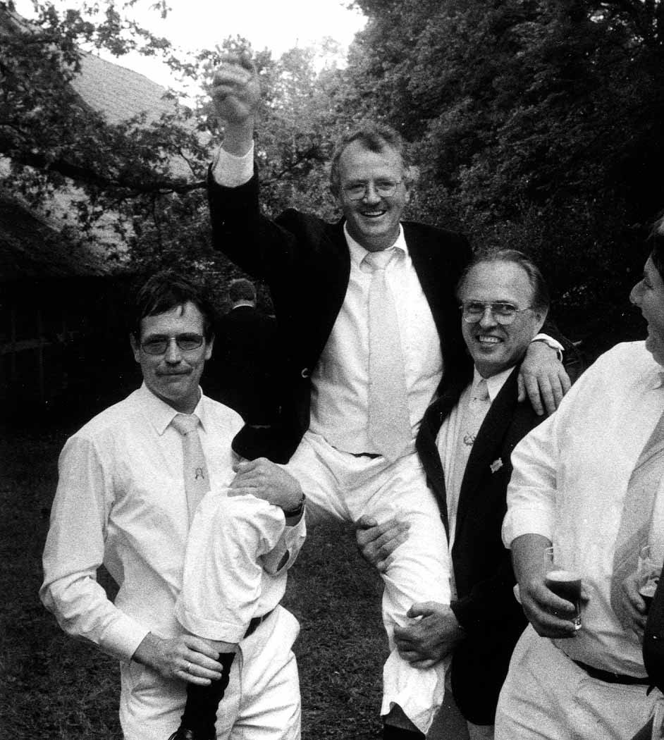 07.1996 : Hampelmannkönig Bernhard Vornholt wird gefeiert von Josef Vornholt und Josef Schräder