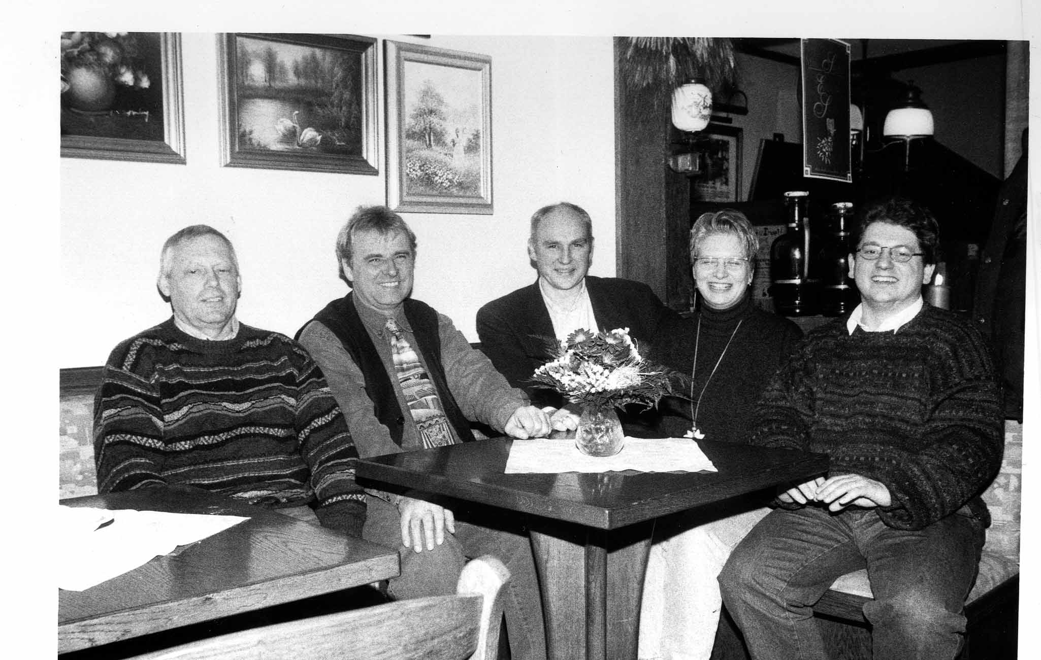 13.01.1997 : Vorstandssitzung zur Vorbereitung des Jubiläums-Schützenfestes mit Josef Leuer, Reinhard Schulze-Tertilt, Heinz-Josef Dartmann, Ulrike Steiwer, Franz-Josef Rutsch Zeitungsartikel der GLOCKE vom 13.01.1997
