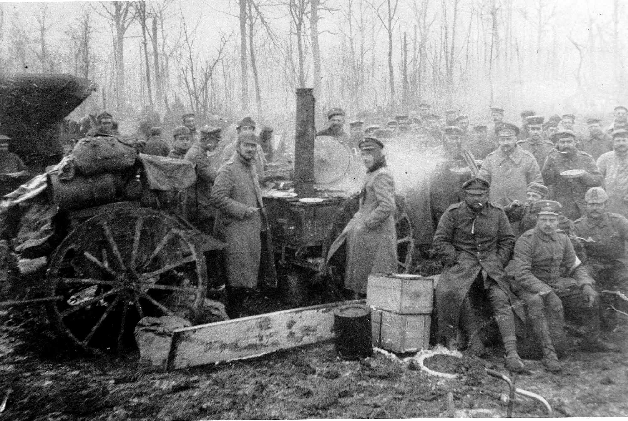 1918? : Soldaten an einer Gulaschkanone im 1. Weltkrieg angegebener Ort: Verdun / Frankreich In dieser Einheit diente Anton Schlüter aus Wieningen. Möglicherweise ist er auf dem Foto abgebildet.