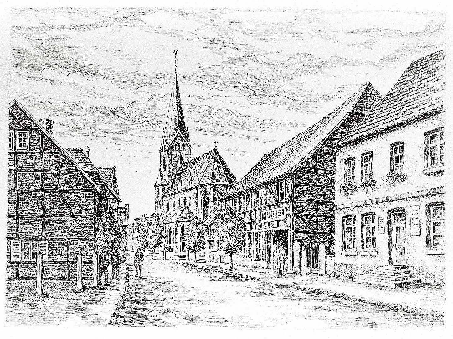 Ortsansicht in Marl, Breite Straße, mit der St.–Georg–Kirche