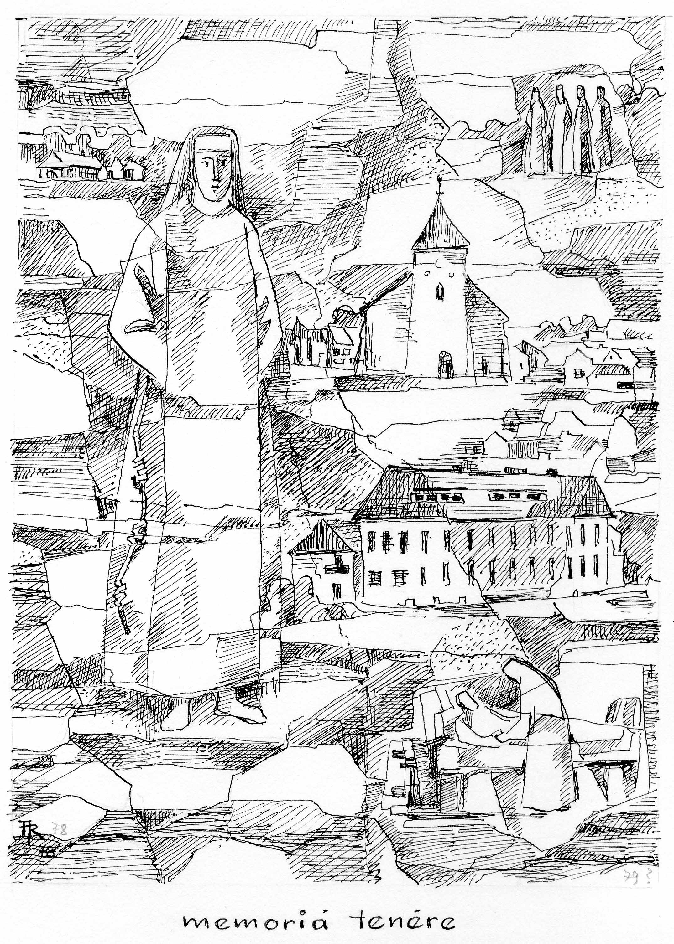 "Memoria Tenere", zur Erinnerung an das Wirken der Franziskanerschwestern im St.–Vitus–Krankenhaus in Everswinkel Federzeichnung, 1979