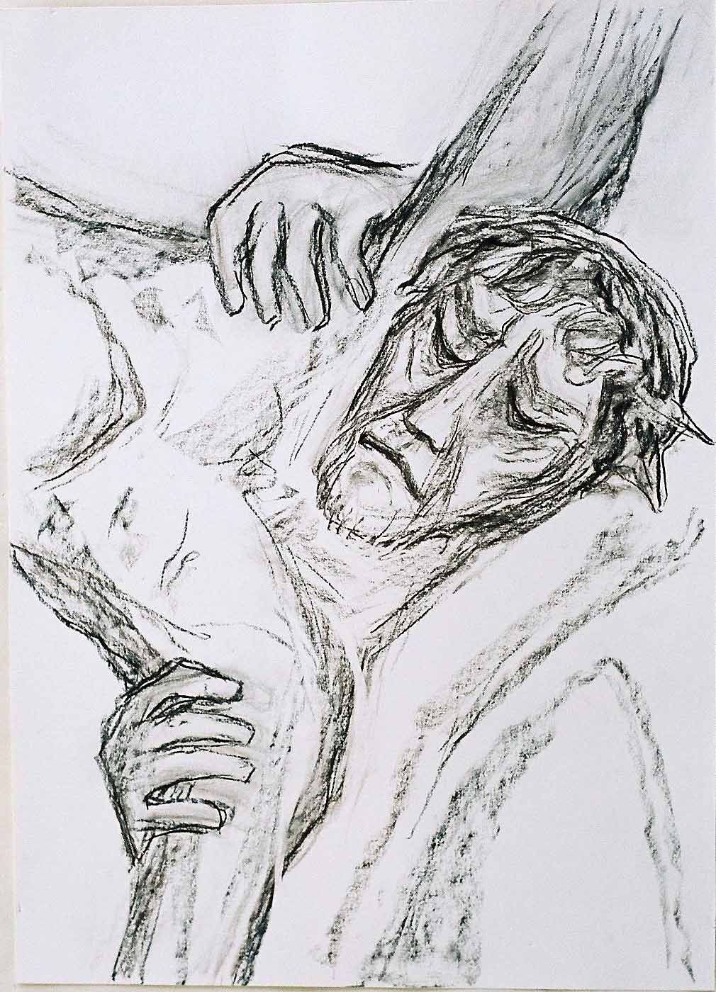 Kreuzweg, XIII. Station: Jesus wird vom Kreuz abgenommen.