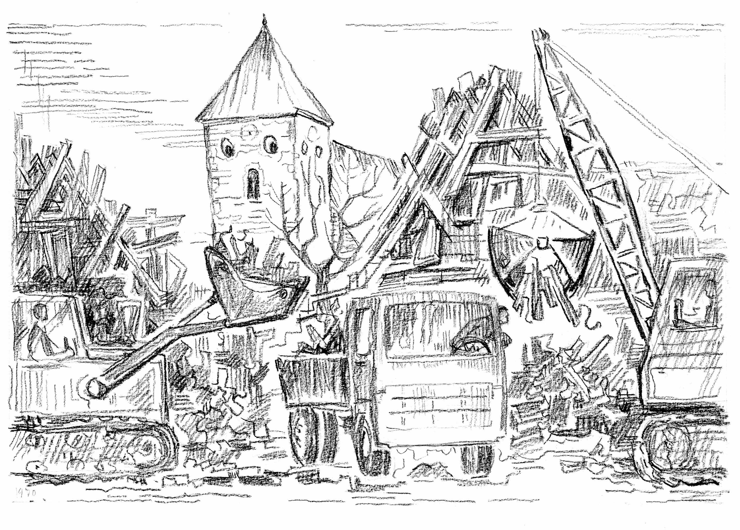 Abbruch der Fachwerkhäuser am Kirchplatz