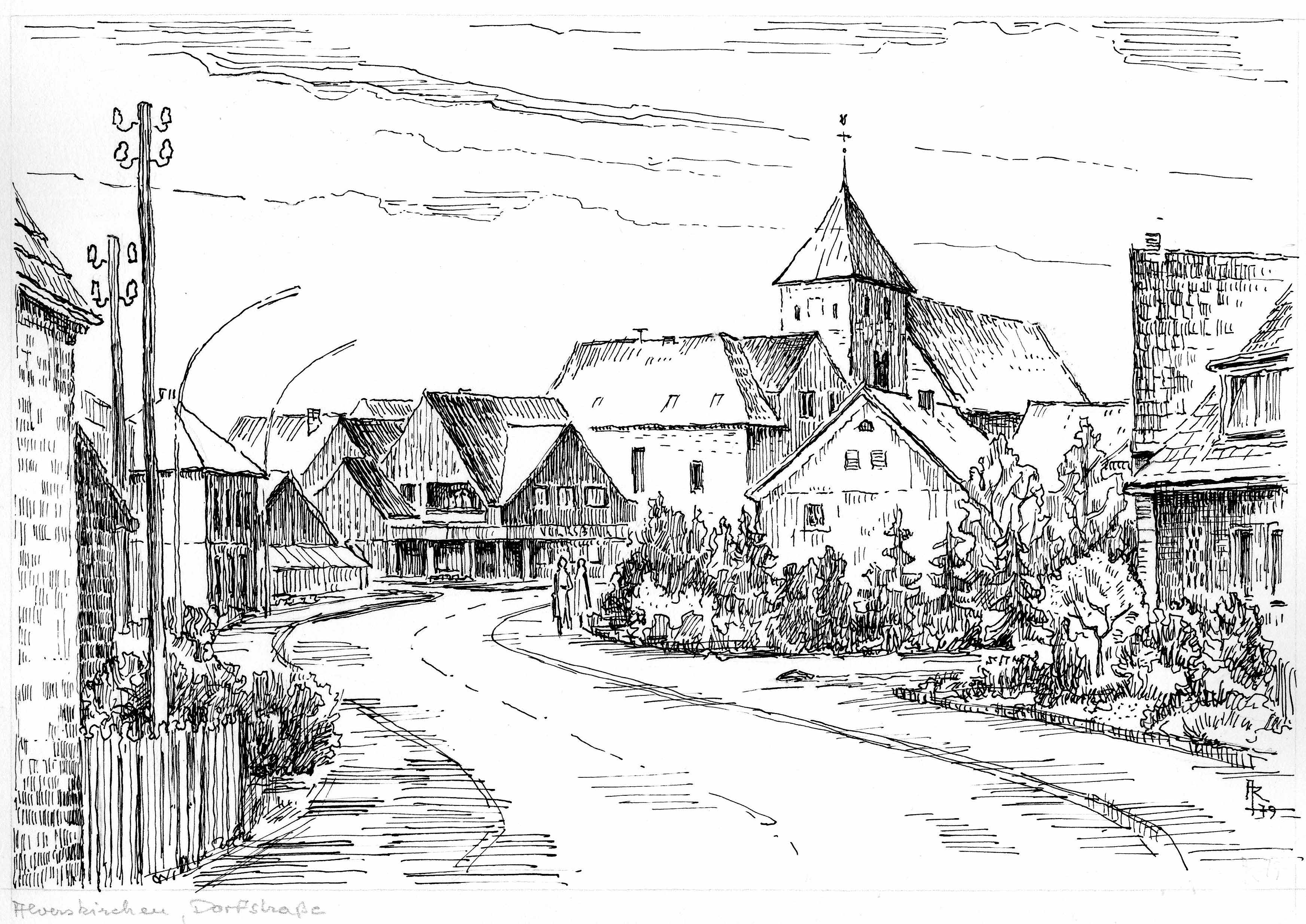 Ansicht der Hauptstraße mit der Volksbank und der Pfarrkirche