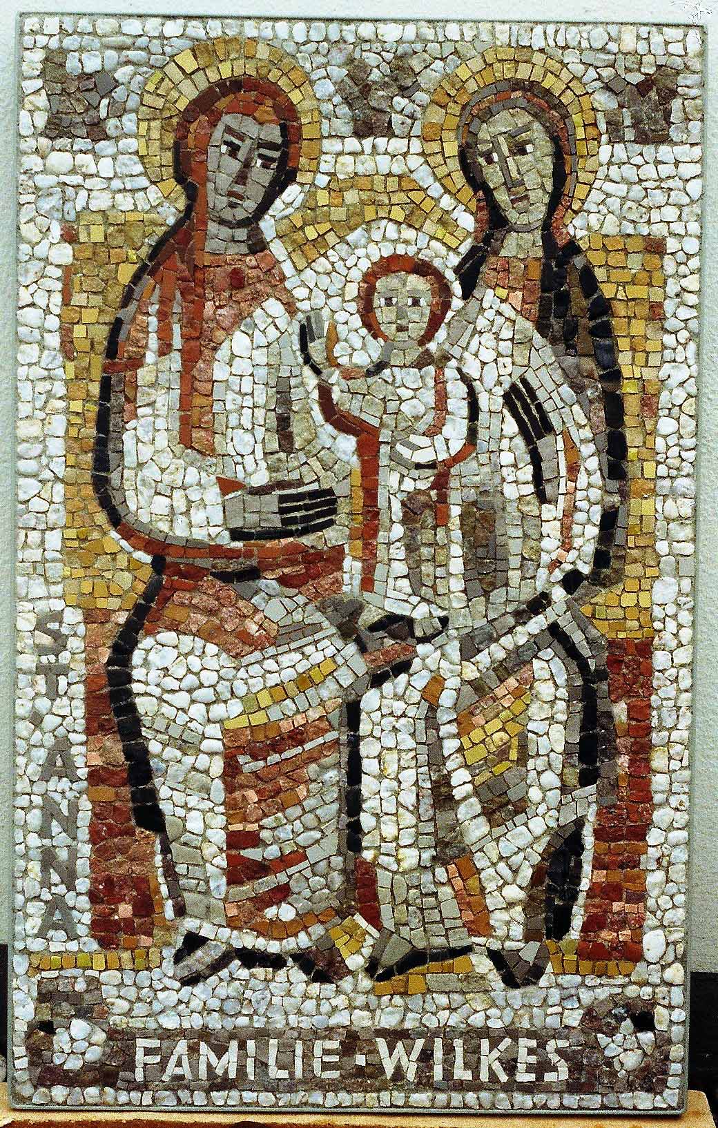 Das Kieselsteinmosaik wurde für das Grab der Familie Wilkes gestaltet und hat seinen Platz auf dem Friedhof der Gemeinde Marienthal bei Wesel.